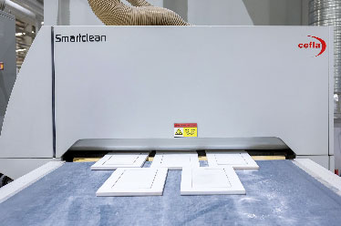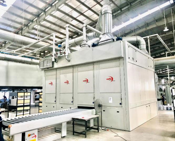 - Cefla machine is to minimize the impact of environmental factors on the surface and to ensure the output product is of good quality. The head is arranged with Smart Clean smart dusting device to ensure adhesion on the surface in the painting process.